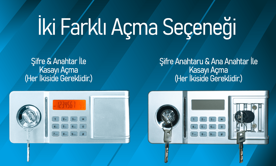 It provides full protection for your money and valuables against both fire and theft. Double security (key + password), patented thermal insulation system, cut and impact resistant structure provides complete protection to the user in every way. In addition, the model with two different encryption systems has an alarm feature against incorrect passwords.